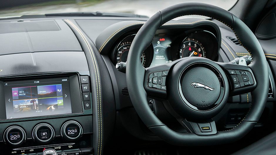 Updated F-Type adopts the Touch Pro infotainment system with an eight-inch capacitive touch screen. Parking assistance is new, and there’s also a new smartphone app called ReRun. Designed in conjunction with GoPro, it provides a means of recording and sharing your driving moments on social media or, viewed another way, it’s an opportunity to show off online, and regret it afterwards.