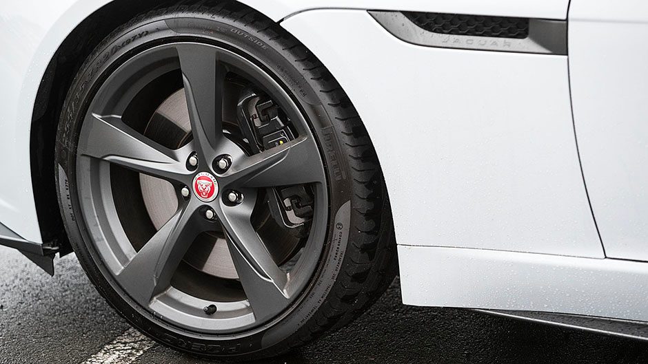To more important things then. How has Jaguar improved upon a drive that, when we last experienced it, had us fizzing like fools? They’ve simply added more of the good stuff, taken a great thing and made it slightly better. The F-Type 400 Sport gets a modest power upgrade to the 3.0-litre supercharged V6 engine, peak output rising from 280 to 293kW or (close to) 400PS, hence the name. The bits that keep performance in check have also been uprated with the addition of the Super Performance braking system. The upgrade means 380mm front and 376mm rear discs, acted upon by black calipers with, lest you missed it on the rump, the 400 Sport logo. One other key change is a configurable dynamics system so you can dial up throttle, transmission, steering and damper settings of your choosing. And to round things out, the F-Type 400 Sport rides on 20-inch alloys.