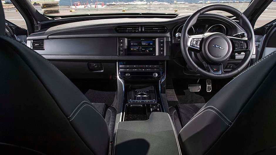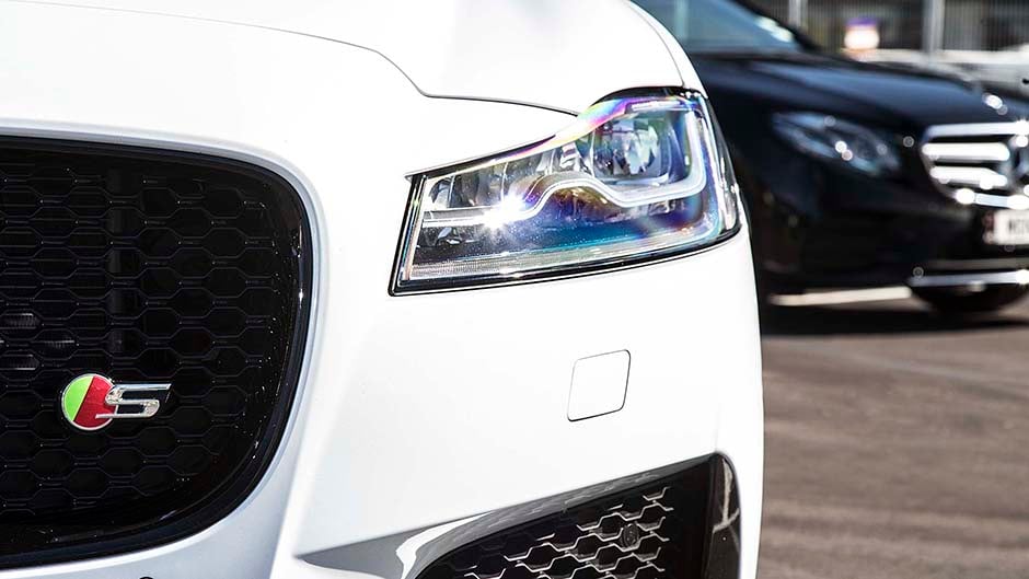 The E-Class, like the S, has long been a repository for new technology, and in the latest version there’s a new widescreen cockpit consisting of a pair of 12.3-inch high resolution screens sitting side by side and creating a display that runs from the centre console virtually to the driver’s door, full of colour, and offering three different views for the main instruments. By contrast, the XF’s dials are less flashy, more traditional. In fact, the XF controls are more simplistic overall; there’s no central controller, just the rising roundel that is Jaguar’s unique gear selector.