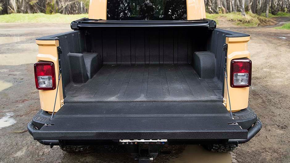 The Brute starts life as a Jeep Wrangler Unlimited before being shipped to AEV for extensive modifications. It’s a helluva lot longer when it emerges as a Brute, with 590mm added to its wheelbase and a further 410mm tacked on the rear overhang to accommodate the tray. AEV further reinforces the chassis to prevent ‘beaming’, 4×4 industry speak for flex and twist. They box in the rear of the passenger cabin with steel, and while you can see where the joins are, the original Wrangler’s build quality is rather rugged anyhow, so it’s not out of place. The tray is a little over 1.5m wide and long, made from a toughened plastic resin which is said to make it stronger yet lighter than steel. It’s about the same size as, say, a Ranger’s but not as deep, and the load height is even loftier.