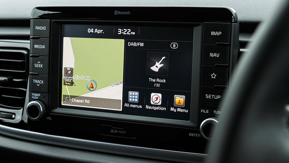 The interior of the Rio is streets ahead of where it used to be, and is really rather appealing, especially with its multifunction leather-bound wheel, tablet-like touchscreen display, USB input that’s backlit red, and snatches of piano black in the centre console. A pity the oddments spaces aren’t rubber lined as things thrash around some.