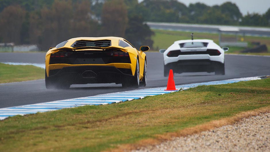 We’re strapped into Lamborghini’s new 730bhp Aventador S, about to head out onto the fabulously fast and flowing Phillip Island GP circuit, and it’s raining. What could possibly go wrong?