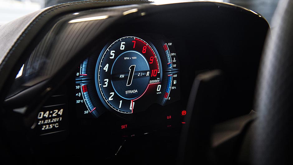 The seven-gear single-clutch transmission remains, Cenciarelli saying it’s the best solution in terms of shift speed and weight while reiterating he thinks a twin-clutch would be too heavy in this package. They’ve refined the software for smoother take-offs and changes in auto mode and quicker shifts at speed. Acceleration claims to 100 are unchanged at 2.9sec, though they say it’s a little faster to 200 (8.8sec), with 300 realised in 24.2sec.