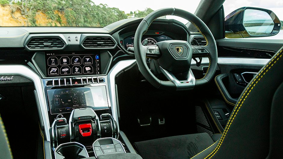 There’s a marked change in character as you progress through the modes. It’s genteel in Strada, and never has a raging bull ridden so serenely over city streets, the air suspension providing a dignified passage on the oversized wheel package. The steering is light, the engine note subdued (except on start-up where it still insists on trumpeting loudly) and the auto is silky as Urus plays the role of a genuinely refined luxury SUV.