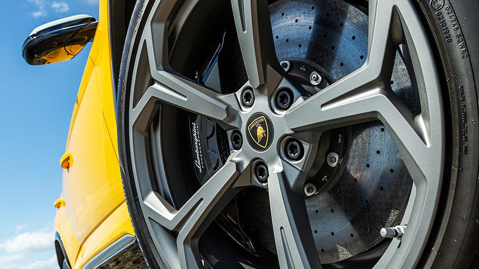There’s plenty of Pirelli rubber on guard too. While there is a lot of size and mass hurtling down the road, Urus never feels clumsy, only locked down and stable. There’s not a hint of understeer in fast bends, just steadfast stability, the rear wheel steering and diff doing their bits. Never have we kept the gas pinned confidently in a Lamborghini over roughed up sections of road where dips and depressions might threaten the integrity of a low-lying undertray.
