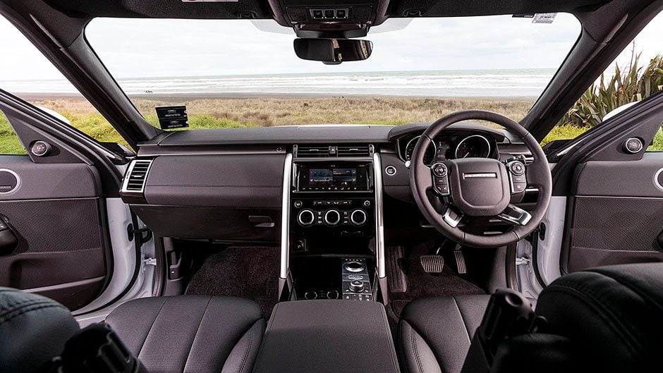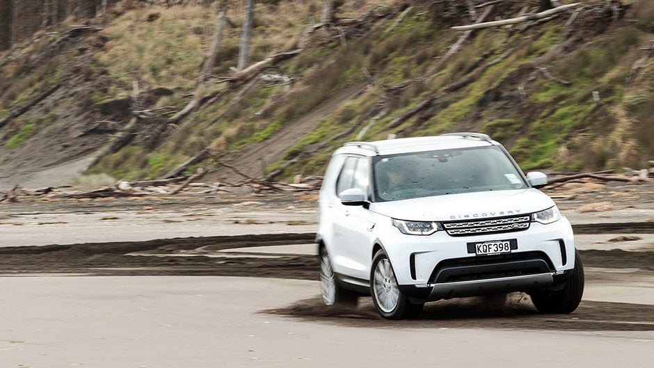 The Discovery is a machine for every occasion. It‘ll tow 3500kg, and go just about anywhere you dare to point a rig with a six figure price tag. The variable air suspension can ramp ground clearance up to a maximum of 283mm, giving half a metre of wheel articulation while it will lower itself to ease entry and exit. Low range can be activated on the move up to 60km/h and, with permanent AWD, torque is split 50/50 but is variable via the auto locking centre diff. Traction control systems keep you trucking slowly on extreme surfaces with the Terrain Response 2 gizmo setting the electronics to suit the ground travelled. We’ve driven Discovery up undulating slopes you’d struggle to walk up while the sand mode is excellent on the beach, keeping the engine lively while the ESP lets you get a slide on, coming in just in time to ensure you don’t overextend yourself.