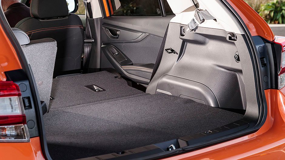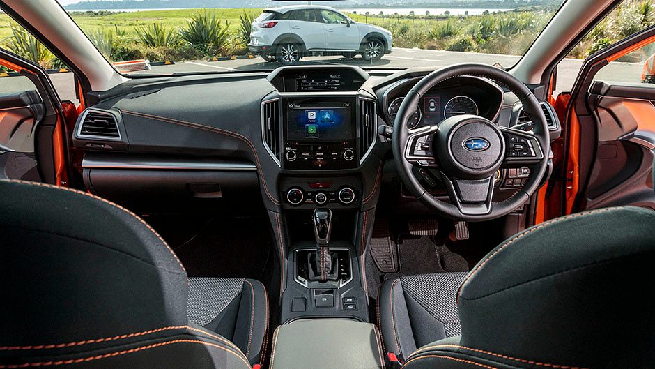 The interior is not quite the novel styling adventure the exterior is, and with dark hues it’s almost gloomy in the rear, though isn’t as tight as the CX-3 which really isn’t that adult friendly. The XV takes the back seat space prize.