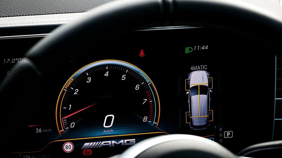 And yet it doesn’t feel neutered for the sake of economy. Of the many drive modes present, none is dedicated to efficiency. Give the throttle a tickle in Comfort, and the trans will drop a gear or two to ensure things get moving, AMG-style. Speaking of which, the ride in Comfort mode isn’t quite that but you’ve opted for the AMG, so you and it are made of sterner stuff. The progress isn’t horrid, and neither are things like the turning circle while the trans is a smooth operator.