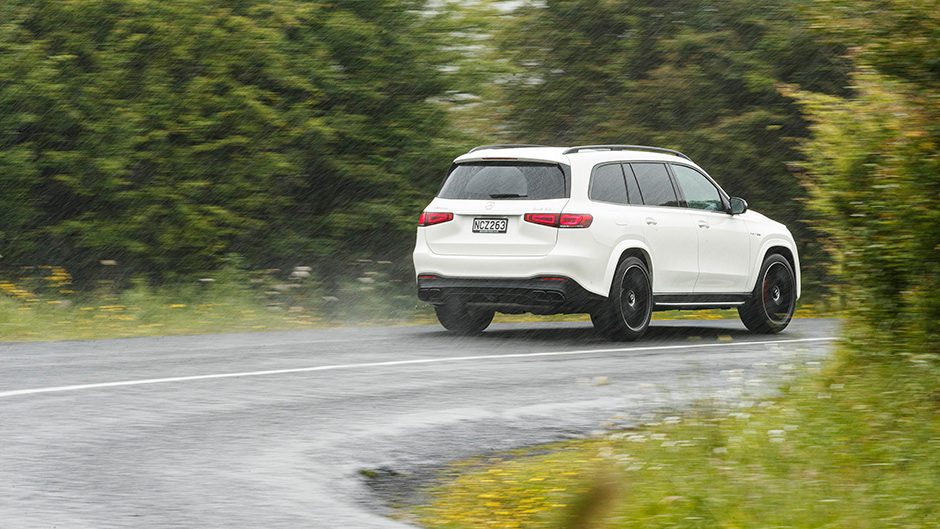 The GLS 63 does go hard, though the following needs to be considered in the context of a 2700kg SUV. Find the right drive mode for your mood (and your six passengers – there are enough modes to satisfy everyone) and this moves in an astounding manner. The dampers react quickly to the bumps but it’s the roll control that helps it turn. The unyielding weight transfer is effectively dealt to, so the 63 transitions through the bends tidily. The GLS is long, so it’s stable, and with screeds of rubber, it holds on. And this is aided further by the AMG Dynamics with brake-activated torque vectoring nipping away on all four wheels. The steering remains rather aloof, and the brakes sure work hard, as does the fuel pump. It’s not overly engaging, yet it’s a quick way to move bods effortlessly across all roads. There are even a few trail modes for the 63, but those wheels and tyres won’t like the punishment.