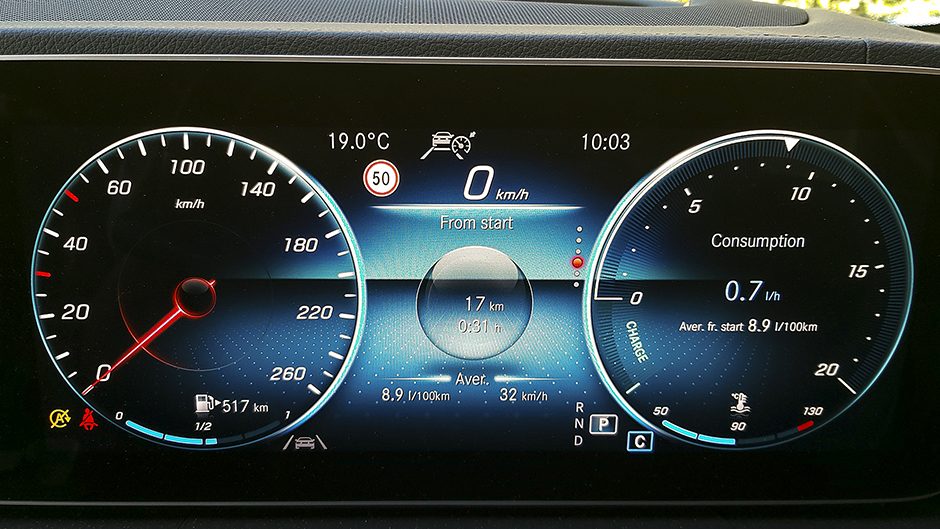 The main dials you can also configure. Along with various themes, the right hand gauge offers six different displays, one of those being a consumption meter. Keeping an eye on this can help calm fuel use, but it’s hard work getting the GLE 300d into the 8L/100km range when commuting about town. You really need to ease up on the gas pedal but then driving with more gusto only sees the consumption rise up into the mid-nines. So we’ve given up trying, and are enjoying the torque which the ‘little’ 2.0-litre serves up readily. You can give it a decent squirt to get up to speed, then ease off, and the low end twist will see you right.