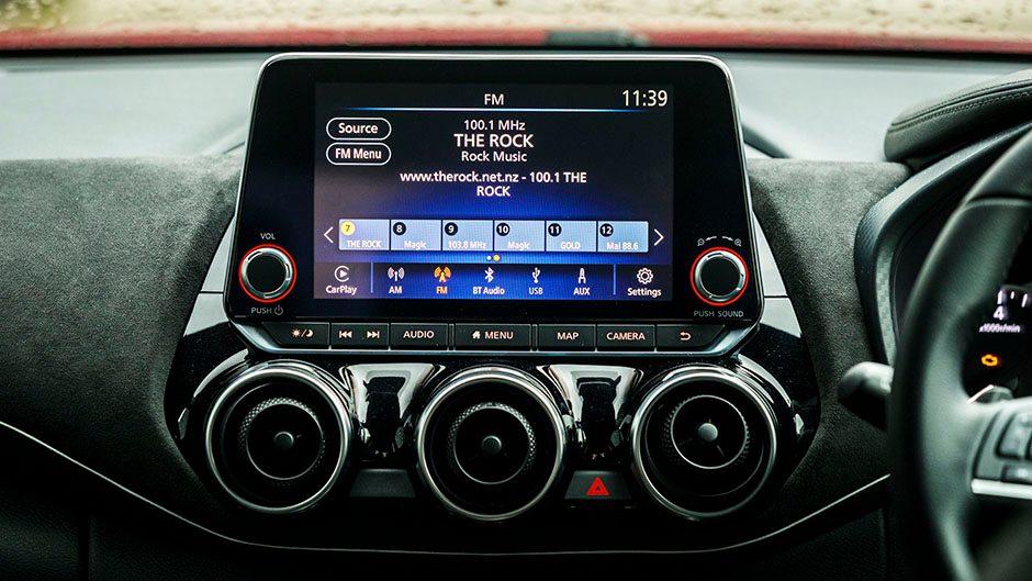 The Ti variant is the best specified, but also the most expensive at $44,390. Still, almost all the top-shelf compact SUVs go for over $40k these days, including 2008 GT, CX-3 Takami, Kamiq Monte Carlo, Kona Ltd, Seltos Ltd, T-Cross TSI R-Line, XV Premium; you get the idea that this is a busy wee sector. But you get extra goodies in Ti, like follow-me-home headlights, quilted leatherette and Alcantara seat trim, smart 19-inch alloys, tyre pressure monitoring, and a clever eight-speaker Bose audio that features “nearfield” drivers in each of the front headrests for better intelligibility. We’d say it’s improved but not dramatically. There’s also fur on the dashboard and above the instrument binnacle, like in HSVs of old. Seat heaters are nice too, but the seat squab is too upright in the lowest setting. While Nissan says these “Monoform” seats offer great spinal support, we’d question whether there’s adequate lumbar support and there’s no adjustability either.
