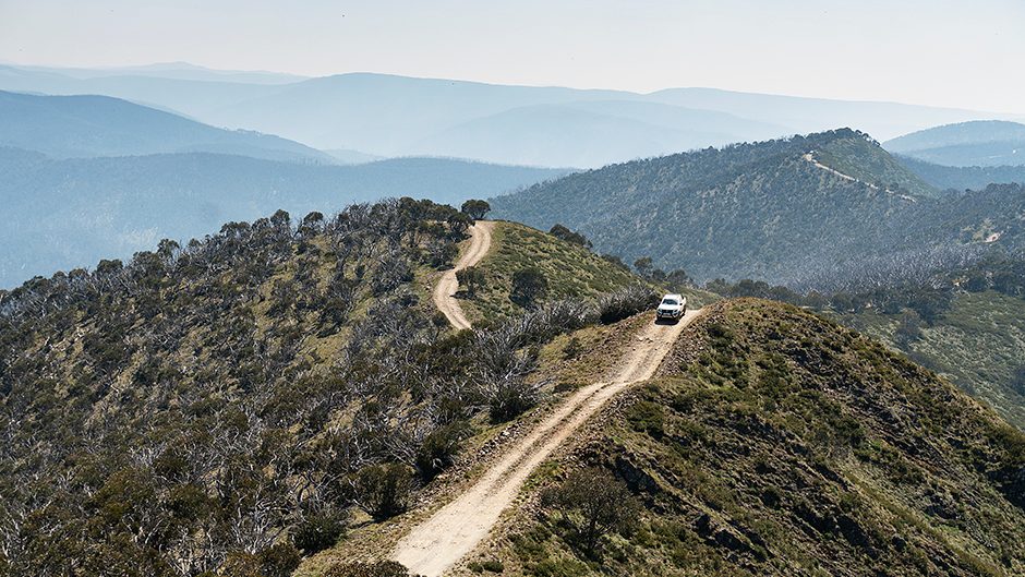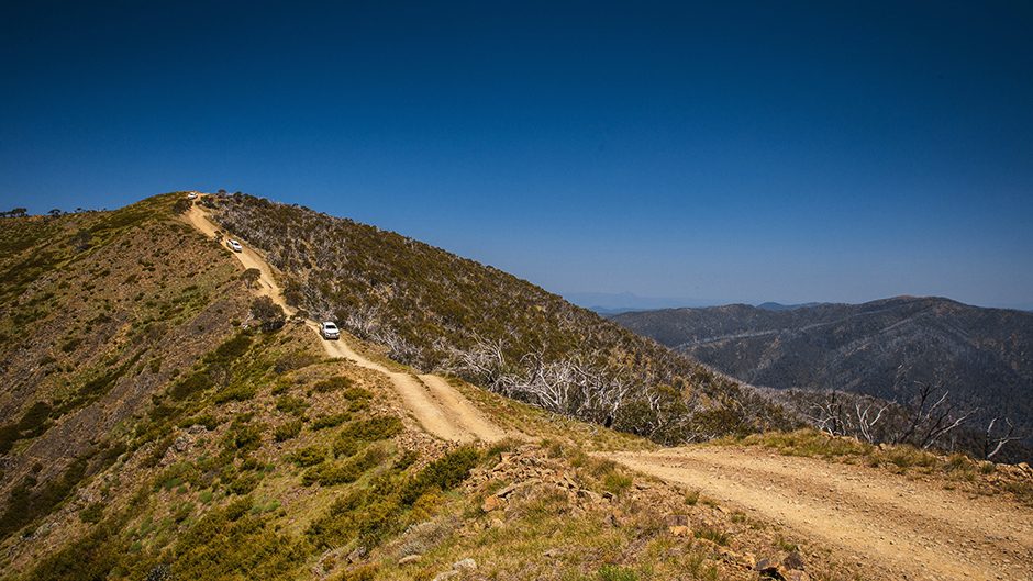 The route itself kicked off at Mt Hotham village, 400km north east of Melbourne, the temperature around 20 degrees a sweet reprieve after the 40 degree sweltering welcome at Essingdon. After 20km of quite spectacular highway driving that took in the main skifields in the Mt Hotham area, we were soon onto gravel roads, with epic dust plumes. Only 40km or so of the drive programme involved tarmac, the remaining 150 were all on gravel/dirt roads or firetrails/unformed mountain tracks.