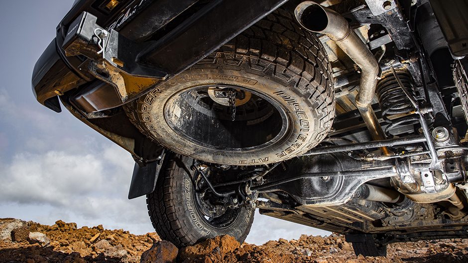 The damper rods are 45 per cent bigger for better suspension and wheel control under heavy going, and provide extra compression capability for a quicker response. Rounding out the hidden changes are more robust front bump stops which evidently engage the chassis rail earlier in the suspension travel, and at a more progressive rate. This ensures better control of wheel movement at maximum suspension travel and a smoother transfer of energy into the chassis, reducing the harshness and noise that makes it into the body and cabin during rough off-road expeditions.