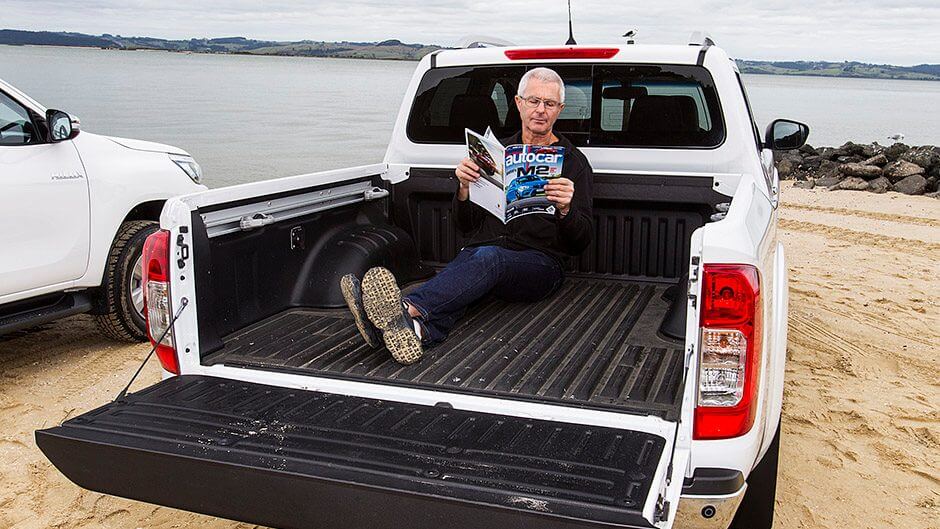 The Karen Walker styling award goes to the Navara, no question. One simply looks macho and the other displays what Toyota describes as a “keen look” with slimline projectors part of the integrated fascia. We reckon it’s a bit snout led. There’s something almost American in the styling of the Navara, and we like the view from the wheel too because the bonnet creases remind, I kid you not, of a 911. Its V-motion grille works too. At the rear, there’s a wee spoiler integrated into the tailgate that appears too perfectly shaped for balancing beer bottles to have happened by accident. The devil, as they say, is in the details.