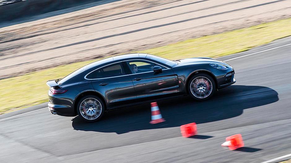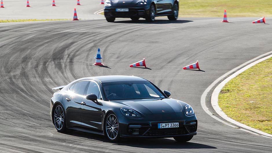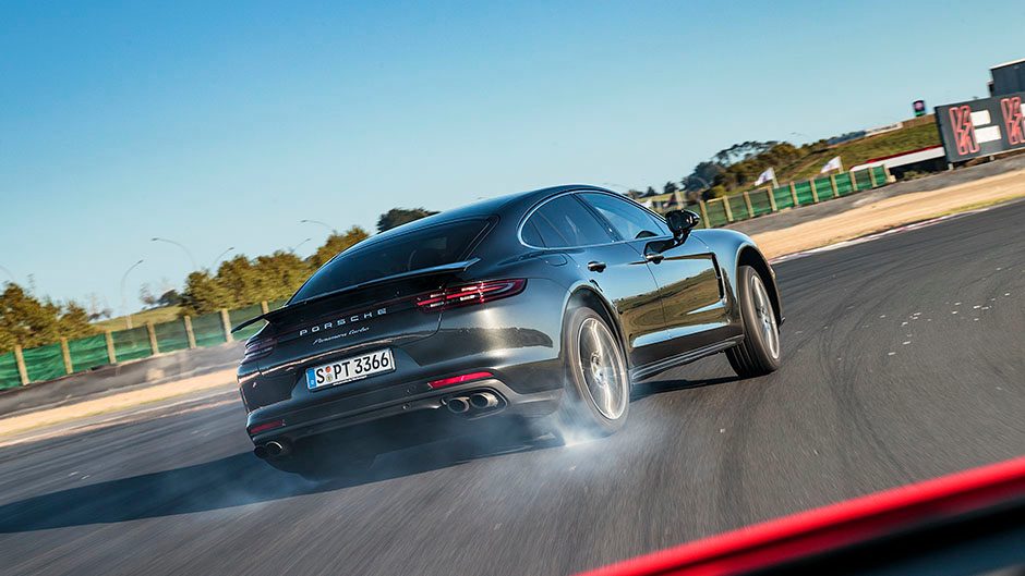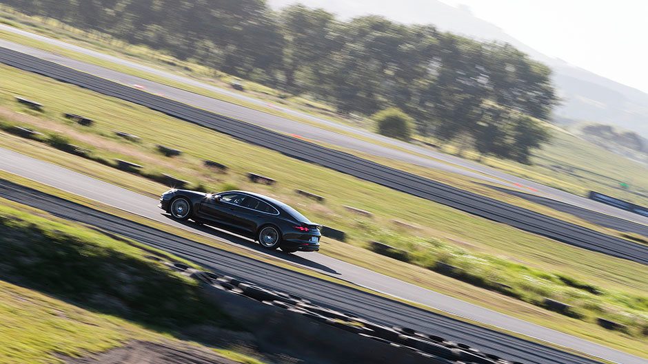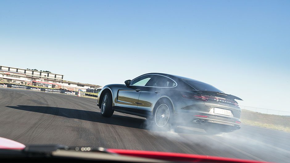 To appreciate the rear seat space, and show the value of a variable all wheel drive system, we were treated to a couple of laps in the Panamera with one of the Porsche factory drivers at the wheel. Heading into the bends he would give the wheel two small but quick left right turns to unsettle the chassis, followed by a larger wrench on the steering on turn in. When accompanied by lots of throttle he had the rears lighting up through the bends as he balanced the big car on a wide slip angle before letting the AWD system pull it all straight on the exit. Our driver made a mockery of the ‘double bastard’, the technical left hander that links the new circuit back onto the main Hampton Downs loop, by drifting the Panamera right around the bend as we tested out the load capacity of the grab handles in the rear. Scintillating stuff and it shows that the Panamera, despite its sticky AWD system, can be a larrikin too.