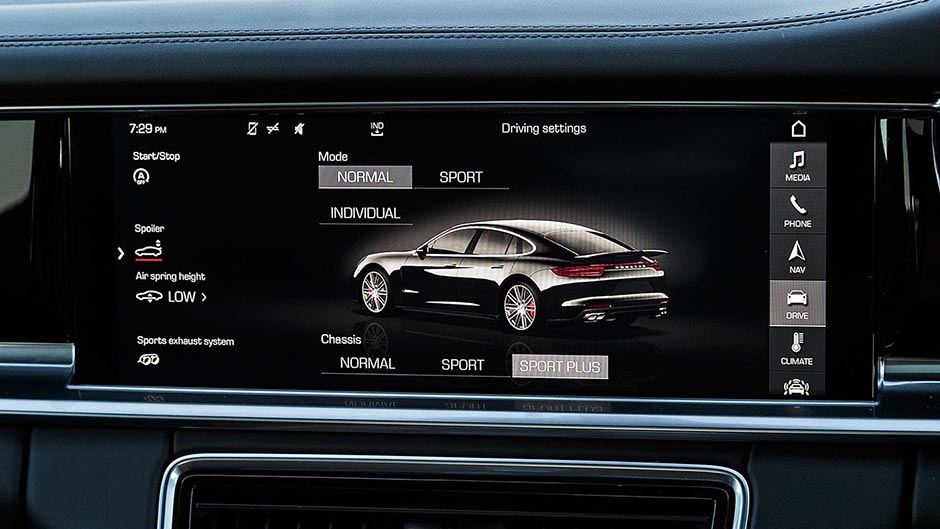New Panamera gains optional dynamic enhancing hardware like rear-axle steering ($4700) and electromechanical roll stabilisation with active torque vectoring ($10,800). Standard fare for NZ models is new adaptive air suspension with a greater air volume to deliver an increased variance in spring and damper rates. A dedicated chassis controller is new too, enabling all the systems to work more efficiently. You can go all out on the brakes with the $19,340 optional ceramic upgrade complete with ten-piston front calipers.