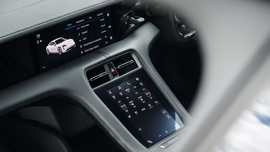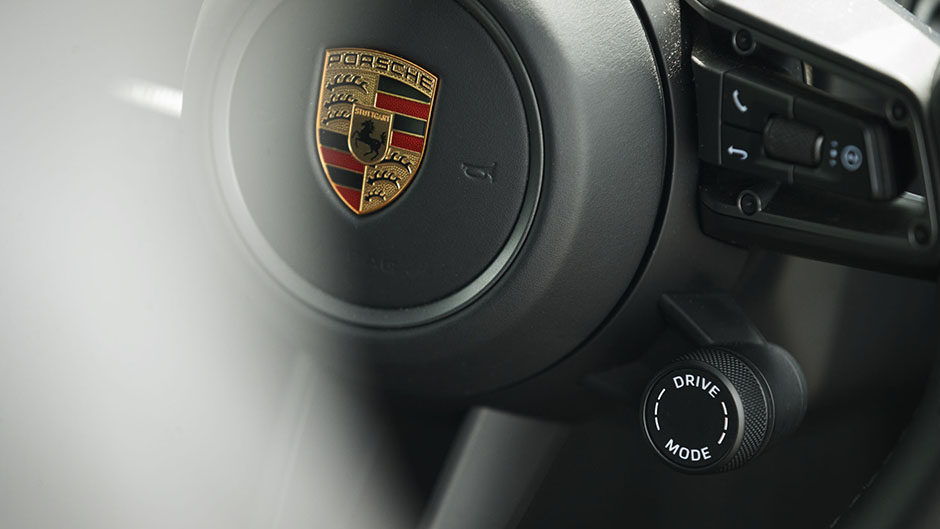 Because there is a trend in the motoring arena to go buttonless these days, we’re glad some buck that and Porsche has held out for as long as it could. So Taycan has digital buttons, such that all HVAC manipulations are done on a screen that has a pushbutton-like haptic operation mode. Can’t operate that? Say the words ‘Hey Portia’ and the genie will do it for you. Or not; she’s a touch temperamental. Much of the remaining set-up is relegated to the touchscreen above. On the wheel is a drive mode dial, just like on other hot Porsches.