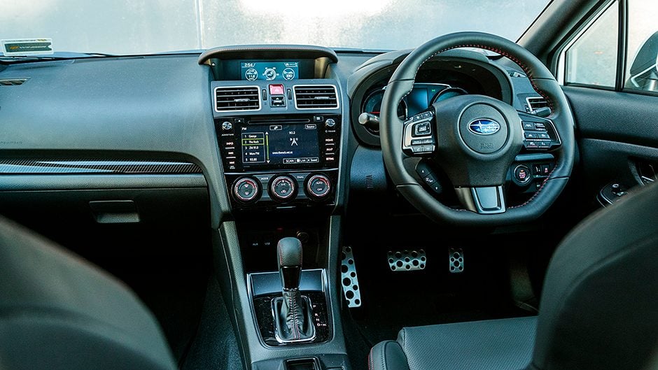Unlike the hardcore WRX STi with its enormous bonnet scoop, huge rear spoiler and 19-inch alloys, the WRX Premium is more subtle, a sleeper almost, with only the red painted brake calipers hiding behind the 18s giving a hint of the potential within.