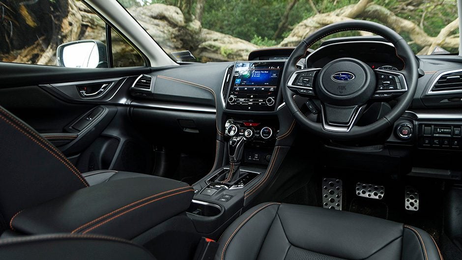 Although neither option triggers your standard locking-diff-low-range-decoupling-roll-bar off-road jargon, they instead offer alternative engine and transmission calibrations designed to free you from strife (or enable you to waltz right into the centre of it with confidence, if that’s the aim). When X-Mode is activated, it suspends the CVT’s lock-up clutch and uses lower gear ratios to help send power to wheels that have less grip. The traction control becomes extra sensitive, and hill descent is activated.