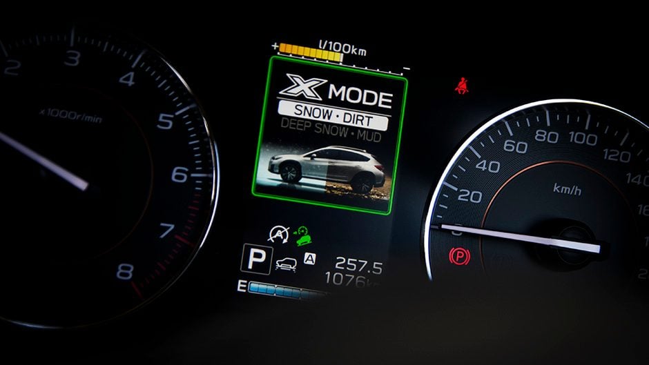 The XV also now gains Subaru Intelligent Drive (SI Drive for short) and X-Mode. The former is Subaru speak for its engine management system — giving drivers the ability to switch between an economy-focused drive or a gutsier performance mode. X-Mode, meanwhile, is a software-based set of off-road drive modes. All models get the milder snow/dirt setting, while weirdly only the Premium gets a snow/mud mode.