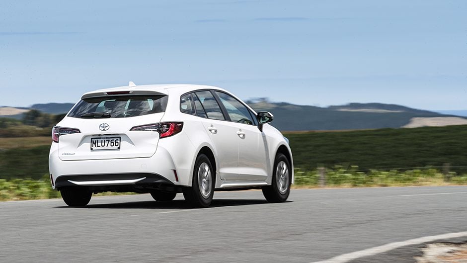 However, base models aren’t awful these days at least in terms of specification. You’ll get a decent touchscreen for the infotainment, and the Corolla wagon is the first Toyota available here with both Android and Apple hook-up, making up for the lack of sat nav. Climate control air con makes the grade but so does a generous helping of hard cabin plastics and a manual handbrake.