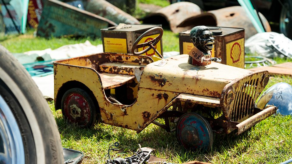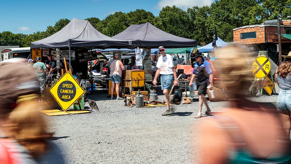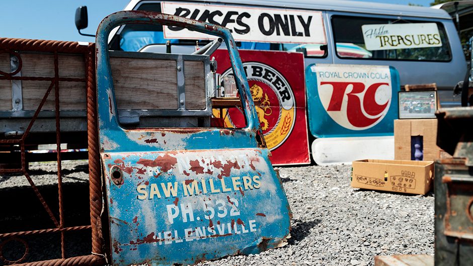 There are makeshift leaners tied, nailed and clamped to whatever can support a bit of wood and a few blokes stooped together around a beer or three as they discuss the business of hot rodding. It doesn’t matter that it’s 9am – any time’s a good time. And it’s okay to wander about clutching a can of your favourite beverage as you pick through piles of rusting hinges and handles.