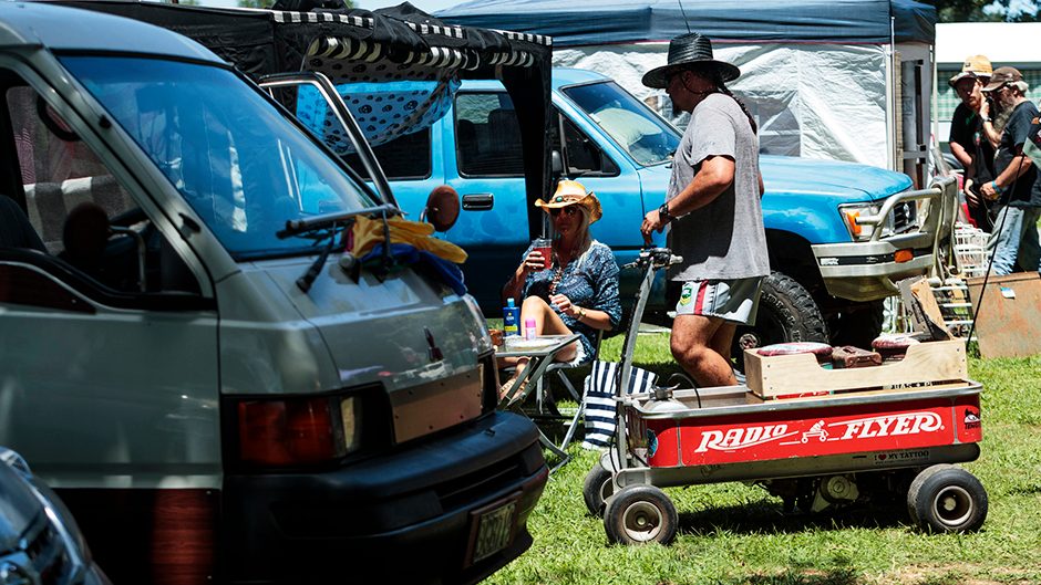 But Waikato Draught, an acquired taste at the best of times, must be putridly warm within 10 minutes in such hot conditions. The cunning employ the use of those stubby coolers, usually displaying a comedic message (I don’t need Google, my wife knows it all) while the pros use carts to wheel their chilly bins around. Our fave was a custom-built hauler, complete with go-kart wheels, faux exhaust and diff with a spoiler as a serving tray and a huge spanner for the handle.