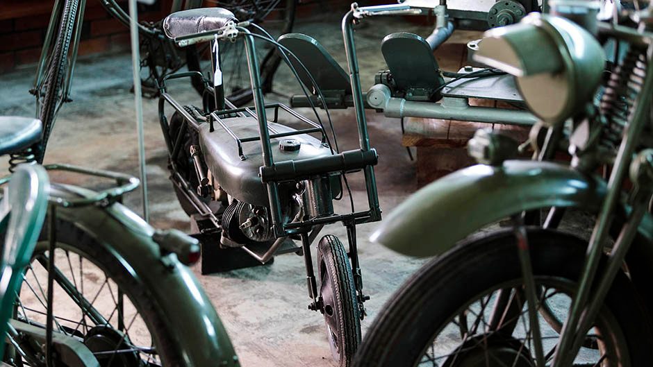 It’s this glamorous era of the brand that first greets you when you enter the four-building museum at Maungatapere. You also get introduced to the thoughts and images of the man who collected most of the Packards on display, Fenton’s late father, Graeme Craw. Graeme’s stated aim in collecting the cars was to map the progress of the 20th Century through the brand. He’d also attempt do the same thing with his large collections of potato mashers, radio equipment, anti-aircraft guns, and historic motorcycles.