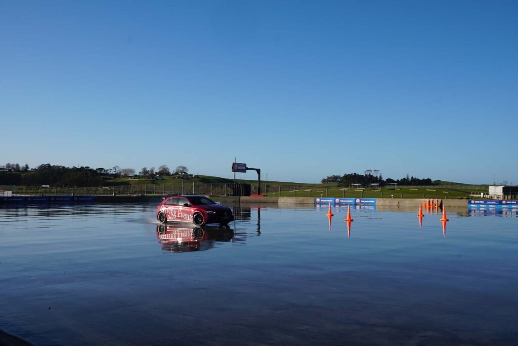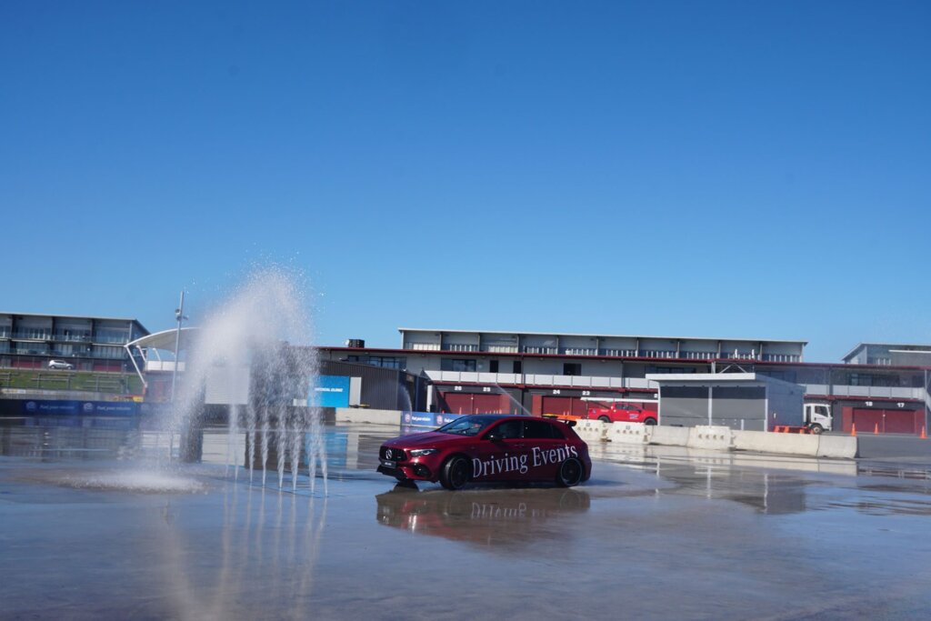 Following the on-track antics, we were then onto our final rotation which kicked off with a spot of drifting on the skidpan. There’s such an art to this and our expert went to great pains to teach us how to hold it crossed up around a circle of cones in the middle of the complex. Which we managed to do for a single loop, and we didn’t overrotate it once. But that was about as good as it got. Unloading the rear is the easy part – though it does take a fair amount of throttle held for a second or two just to break the rears free – but backing off to 60 per cent throttle while continuing to turn in is a bit counterintuitive when the natural thing to do is unwind lock to oppose the spin. Fun but, in the extreme.