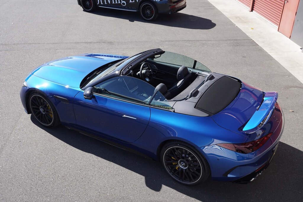 But that was just a tasty intro. We were there for wheel work. And we happened to luck into one of three groups that did it all in the correct order, kicking off with the regular Mercedes product on track, followed by AMG examples and then the EVs. The final exercise of the day was so fun, some circlework on the skidpan with the facelifted AMG A 45 S. And finally, a quick spin in the new AMG SL 65, a return of the firm’s much loved convertible, this time with AMG GT bones.