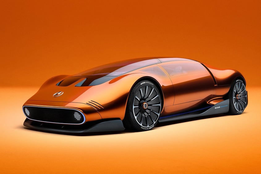 Powering the speedster are high-revving axial-flux electric motors. These are about half the size and weight of conventional synchronous and asynchronous electric motors used by the company currently. They are a key defining technical aspect of future electric AMG models and will debut in next year’s production version of the AMG Vision (below).