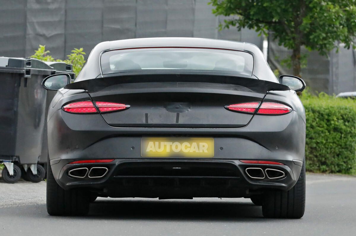Snappers recently caught the new model out testing. A large rear spoiler, carbon brakes and substantial quad exhausts scream enhanced performance. The final production version, which is due to disrobe later this year, will receive a more dramatic makeover from the recently updated Continental GT.