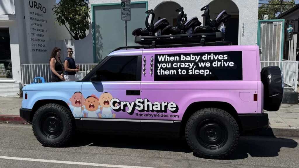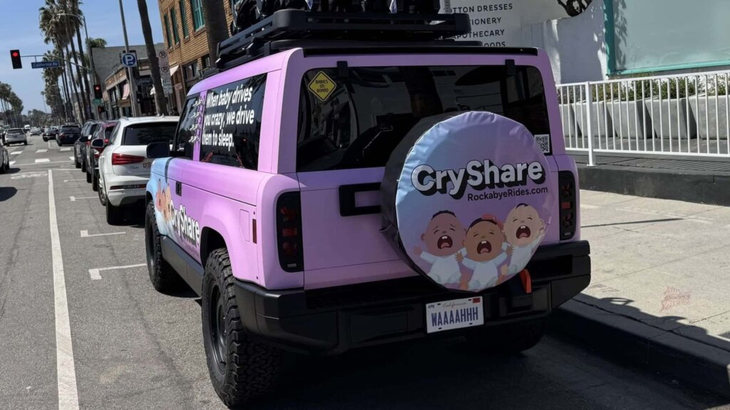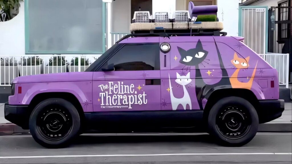 The vehicles were spotted wearing unusual camouflage liveries that mimicked fictional businesses such as a baby ride-share service and a mobile cat therapy van. The unconventional campaign was designed to spark curiosity ahead of the formal launch, with the prototypes deliberately parked in public locations without context or branding. QR codes on the vehicles directed onlookers to Slate’s countdown website.