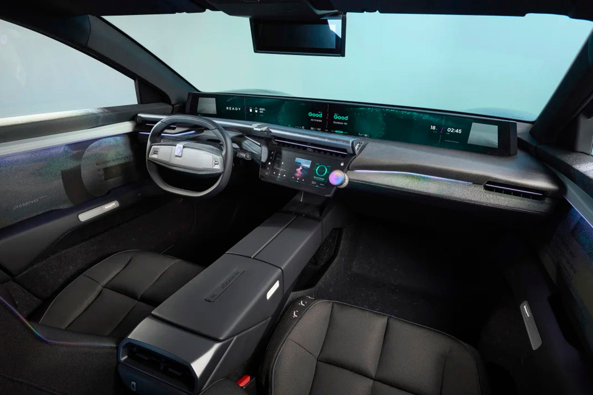 The concept features a wraparound display that includes three separate screens and spans the entire dashboard width.