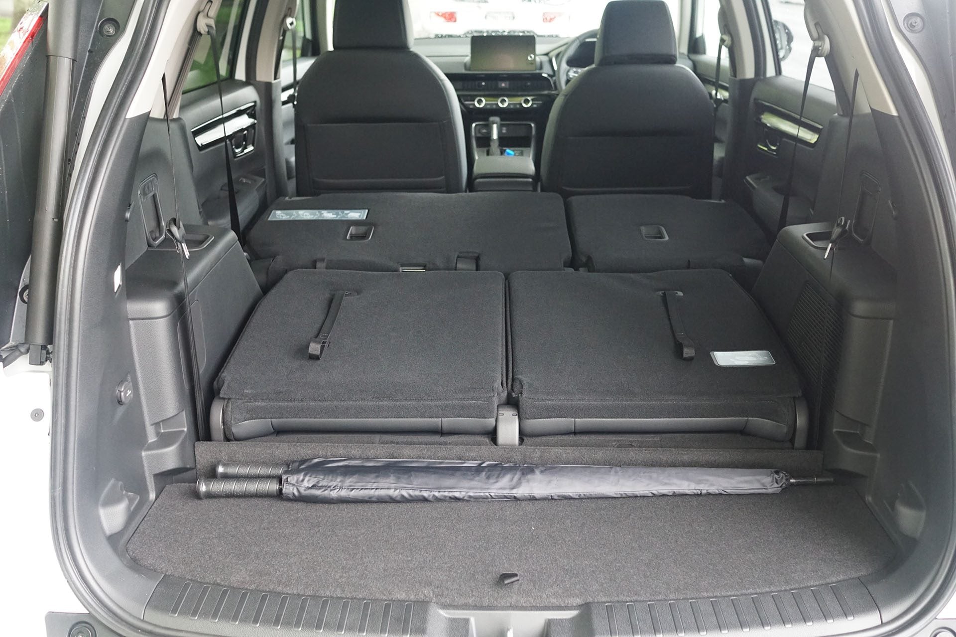 The other we drove was the midrange offering, featuring a revised 1.5T engine mated to a revised CVT and a combined fuel use figure of 7.3L/100km, although rightcar.co.nz suggests 8.1L/100km (187g/km) meaning a fee of $2703. That’s on top of the $57k retail price before ORCs. It too has an impressive safety line-up with 11 airbags, AEB, lane warning and departure systems, adaptive cruise, and traffic sign recognition, amongst others. In fact, spec in the two is remarkably similar, only there are two extra seats in the CR-V Sport 7, as suggested by the name. It’s just a less complex and less efficient powertrain. Paddles select the CVT steps where in the RS they alter regen settings. Where there are three drive modes for the RS, the Sport 7 has just one, an Econ mode button.