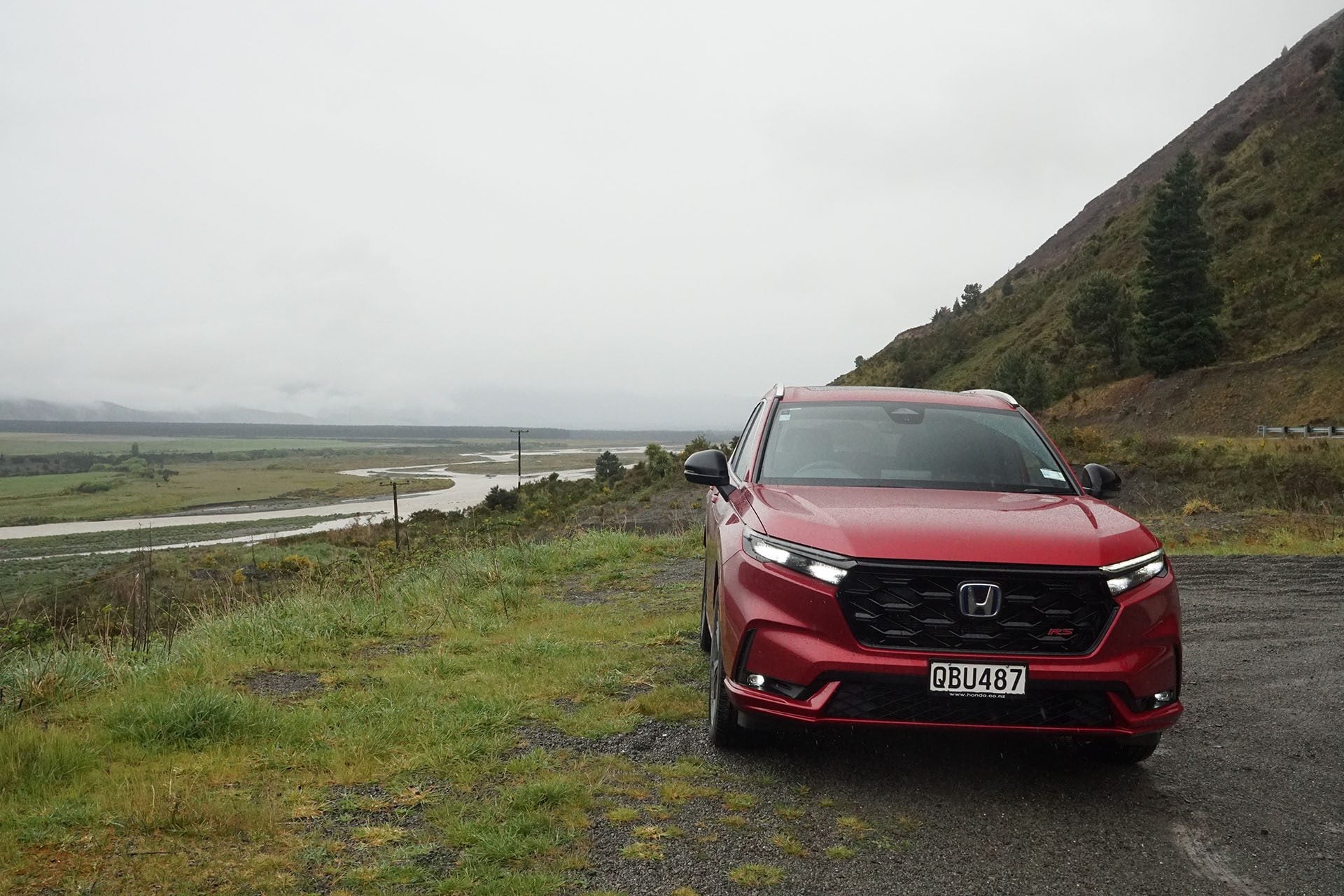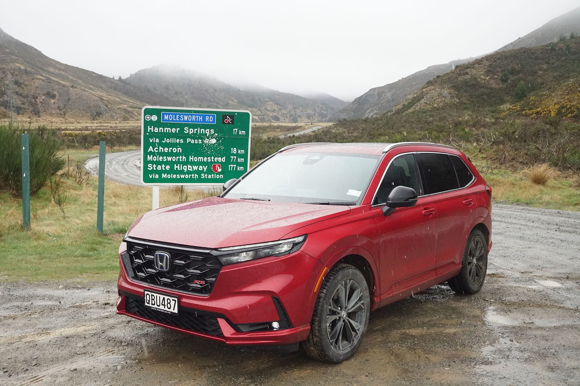 The launch took place out of Nelson, famed for its sunny weather, and involved a decent drive to Christchurch via the Lewis Pass and Hanmer Springs for a stopover. Unfortunately the weather gods didn’t play ball and so too Hermes the god of travel, steering me wrong for a bit. My fault of course for activating sat nav. Should have just turned left out of Honda’s PD and vehicle restoration site in Nelson and then turned left again at Murchison, onward to Lewis Pass and one final left turn into Hanmer Springs. All of which I did except that sat nav wanted to go on up to the skifield (I figured Honda had input the route, but it turns out not). Anyway, we got to see the beginning of the Molesworth Rd, which evidently in summer can be accessed easily enough by even 2wd vehicles, so long as they have decent ground clearance (198mm in the pair we drove). It was cold enough up there that rain turned to sleet for a time.
