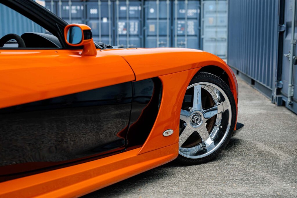 The Veilside Fortune-bodied Mazda RX-7 FD starred in ‘The Fast and the Furious: Tokyo Drift’ from 2006. Universal Studios commissioned the car’s build from Veilside Co Ltd for the film. It has a ‘Fortune’ wide-body kit that adds over 200mm to the car’s width while this FD rolls on Andrew Premier Series Racing Evolution 5 19-inch wheels shod with Pirelli P Zero Nero tyres.