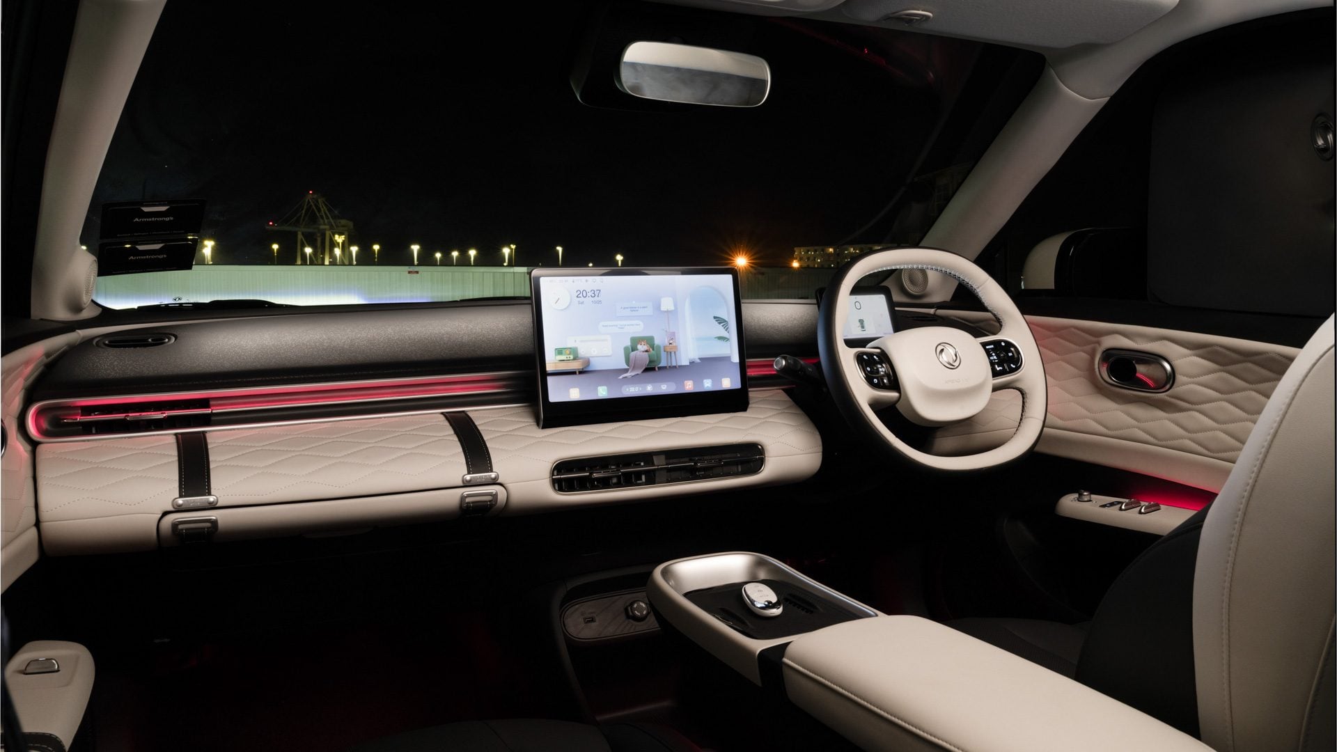 The cabin feels more boutique than bargain. There’s leatherette upholstery, soft-touch surfaces, and a 32-colour ambient lighting setup that would embarrass a few premium brands. The 12-inch central display runs Dongfeng’s own operating system with wireless CarPlay and Android Auto, while a 5-inch driver screen keeps essentials tidy.