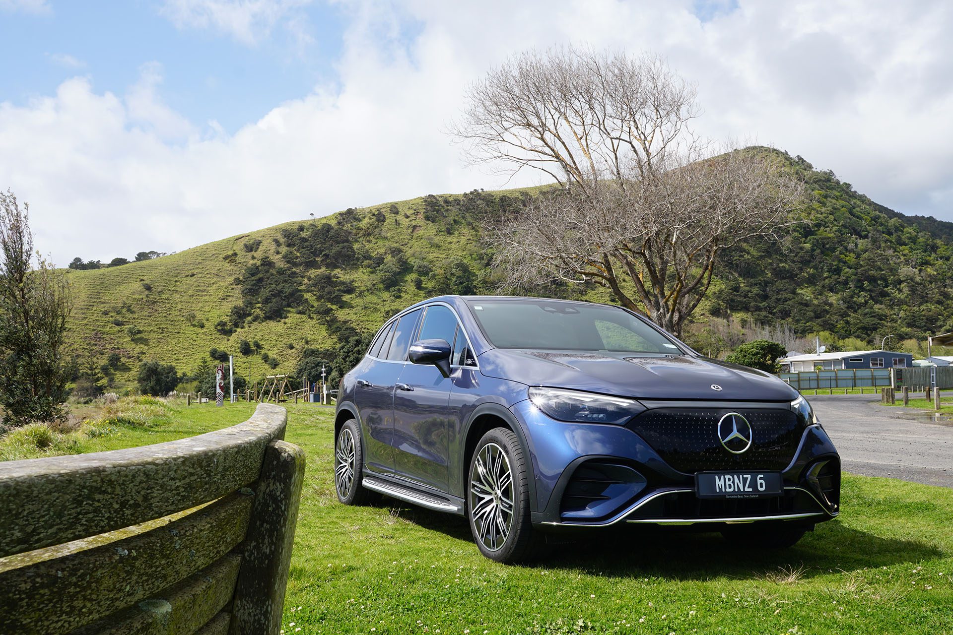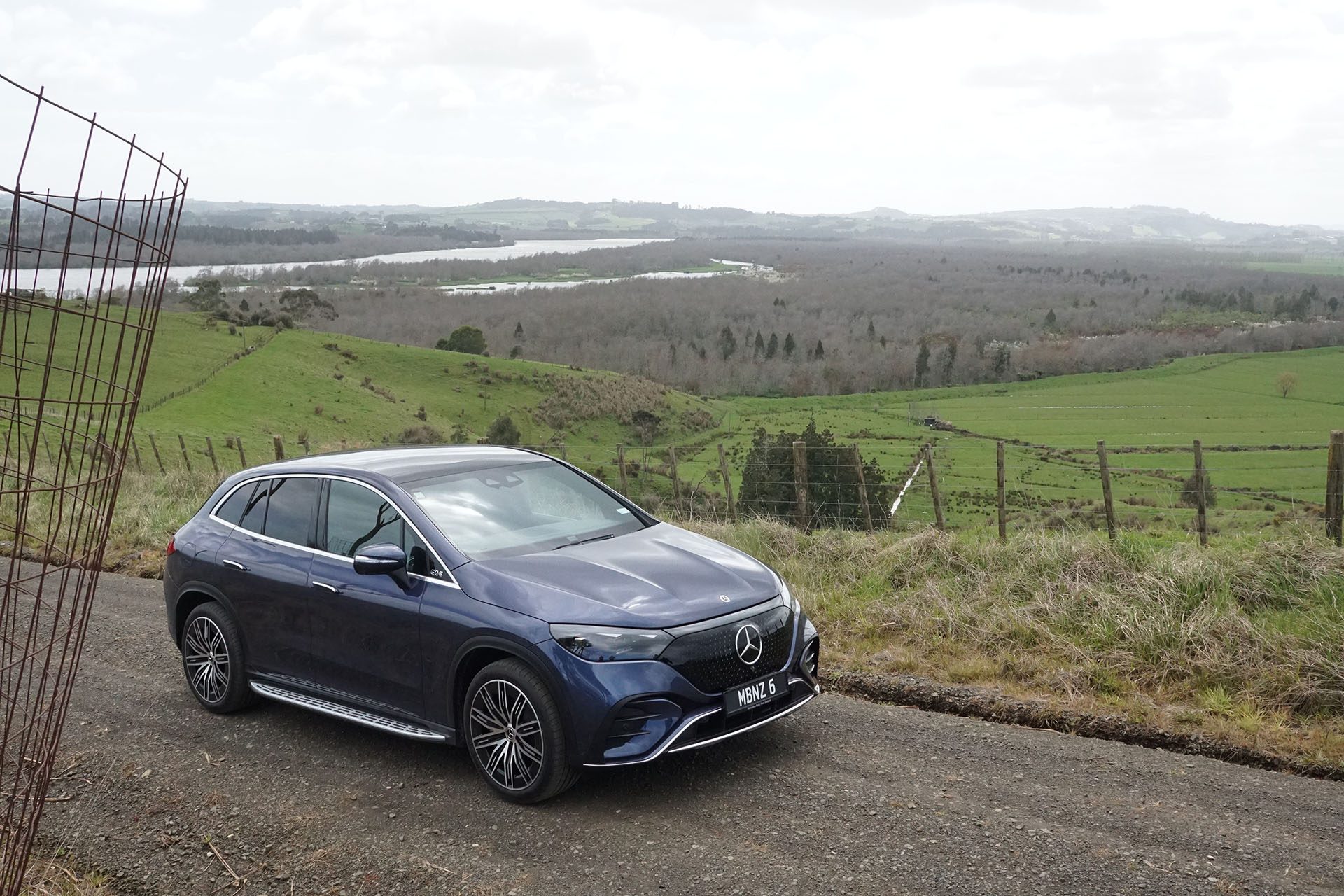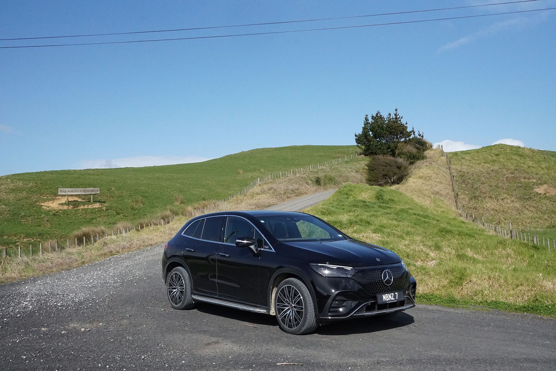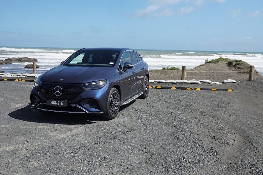 So to the new EQ SUVs. Starting with EQE SUV. We mainly drove it in base EQE 300 trim, which is a single-motor, rear-drive machine. Oddly, NZTA got this wrong, imagining it to be a 4wd unit on the rego sticker. But our experience on gravel roads confirmed its rear-drive status.