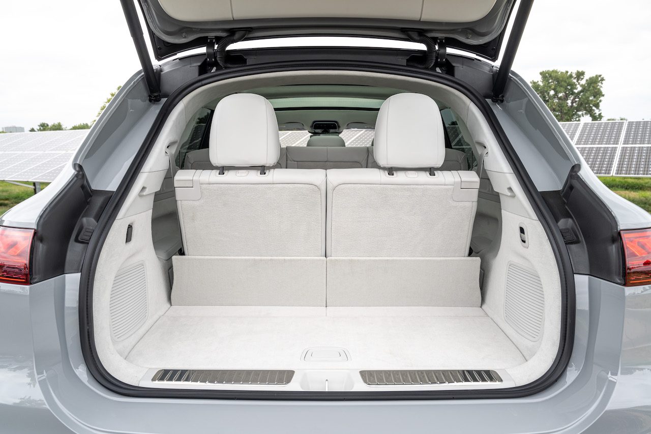 We drove the EQE 300 down a technical section of road and while it’s a bit rolly and the weight is ever evident we appreciated the paddle adjustable regen. If anything this is preferable to actual brakes which seem to require more than expected input to slow the show as you might want. Again, an effect of overall weight. The top regen setting offers the equivalent of single-pedal driving which helps with range anyway. Normal offers mild braking and there’s a no-regen setting to enhance range further.