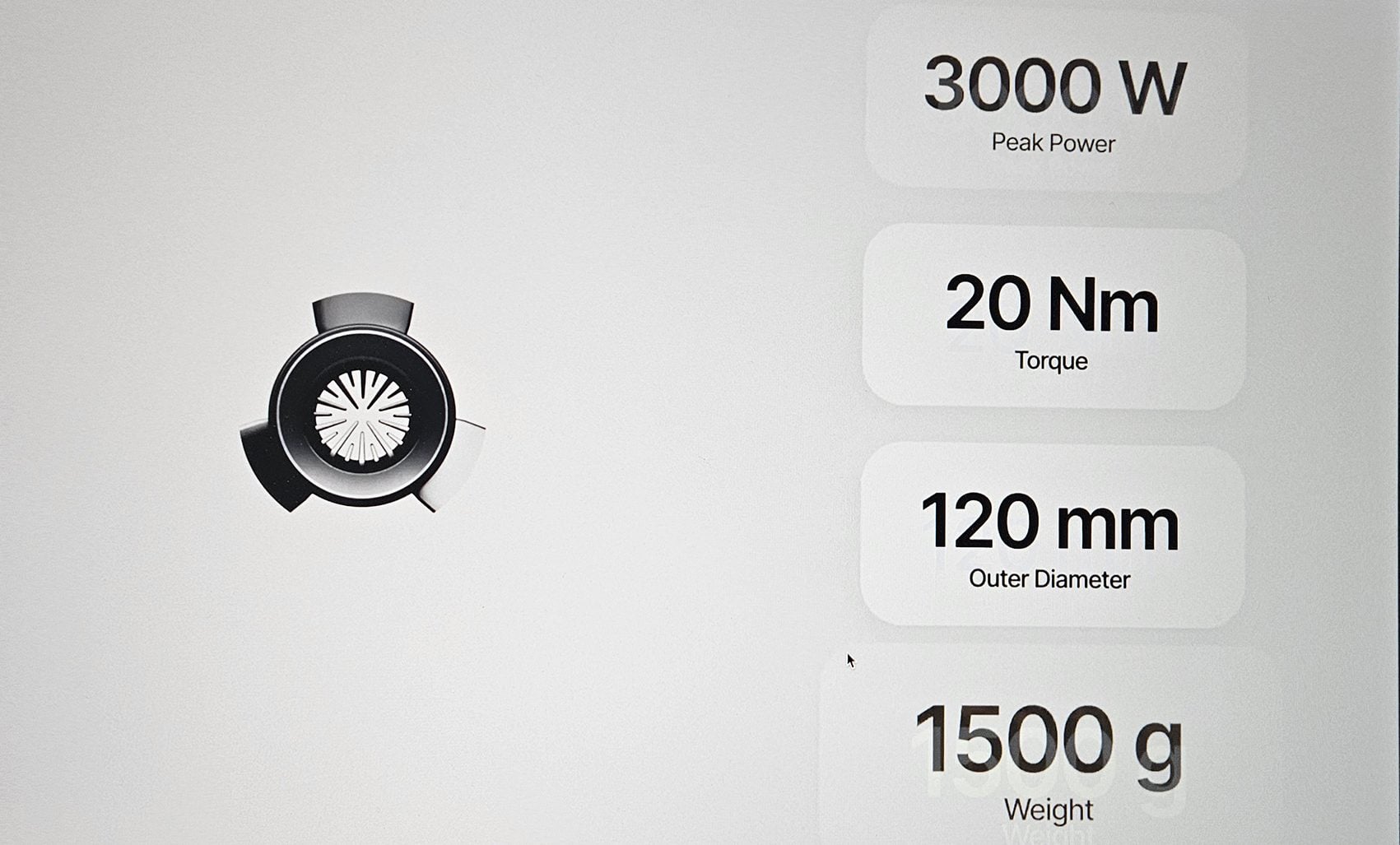 There’s also a drone version weighing 1500g, producing 3000W and 20Nm of torque. It’s diameter is 12cm.