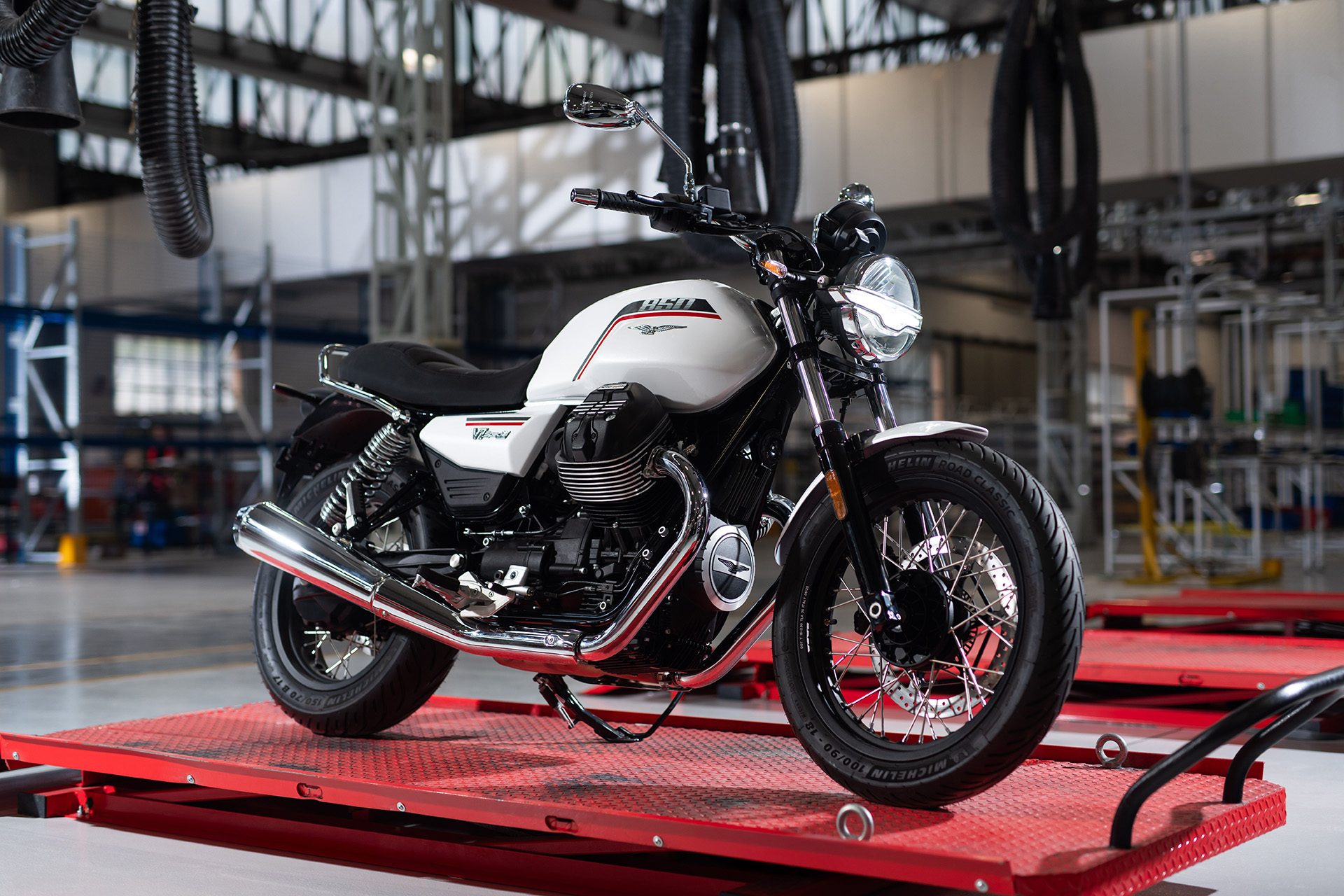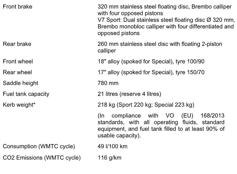 The V7 Special has chrome touches and finishes in white or black. Key items inclue spoked wheels, machined cooling fins, and a dedicated saddle.Â