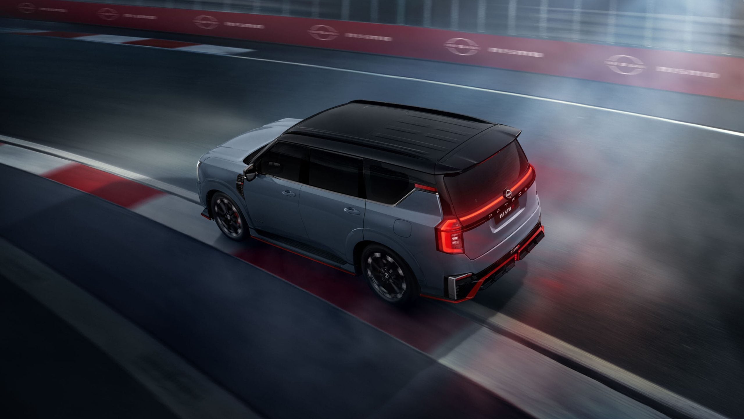 The Patrol Nismo’s aggressive front fascia features a redesigned V-Motion grille and air curtains that improve downforce and reduce lift. Its aerodynamic package includes rear side splitters and air outlets for additional stability.