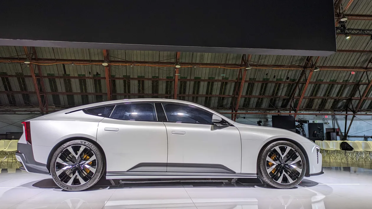 Typical Polestar features include an expansive glass roof and a distinctive table-shaped light bar at the rear.