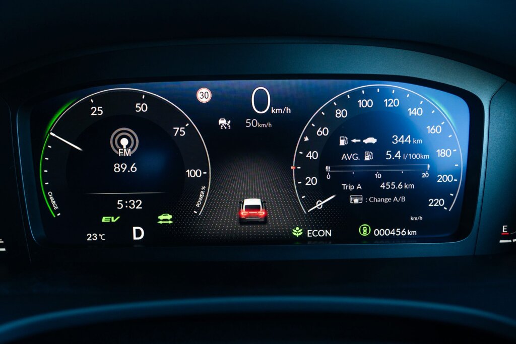 The powertrain is like that in ZR-V and pairs a 104kW/182Nm 2.0-litre direct-injection engine with a two-motor system for a combined output of 135kW of power and 315Nm of torque. Its 0-100 time is a half second quicker than that of its pure ICE predecessor (7.9sec) and combined fuel economy is a claimed 4.2L/100km. A highway figure of 5.5L/100km is absolutely spot on, while around town fuel use is an abstemious 2.0L/100km.