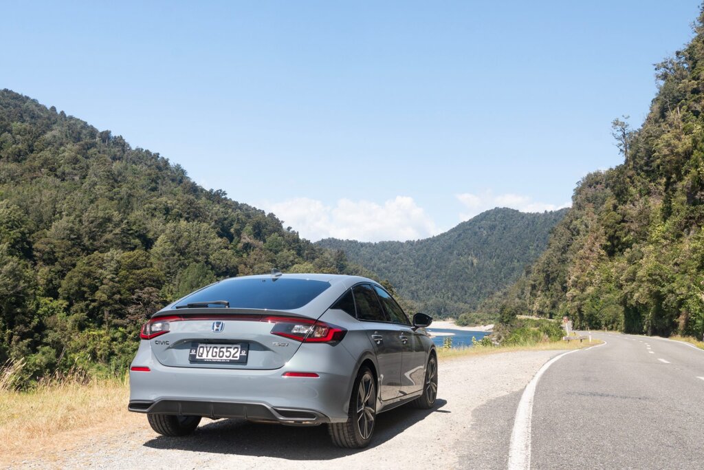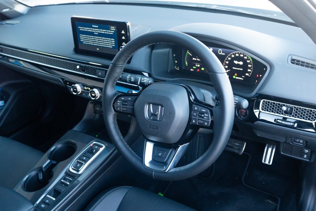 We have just attended the launch of the refreshed model. It’s not just a bumper, wheels and lights job either. For there’s a new powertrain, Honda’s e-HEV two-motor hybrid set-up. The former 1.5T petrol model falls by the wayside. As is so often the way with sedans and hatches nowadays, there’s just one model in the “line-up”, and it is specced to the nines. It also retails for $59,990 which may seem a lot for a Civic.