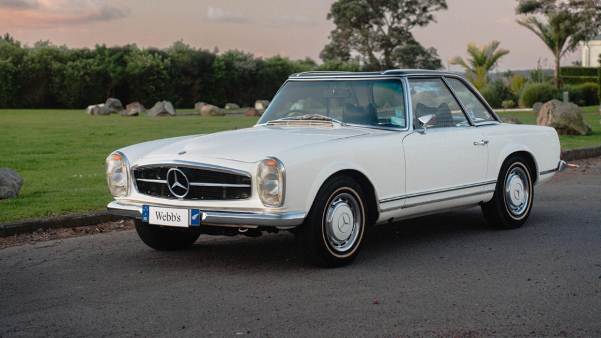 These include a 1969 Mercedes-Benz 280SL ‘Pagoda’, with 80,196 miles. Its auction estimate sits between $325,000 – $350,000.