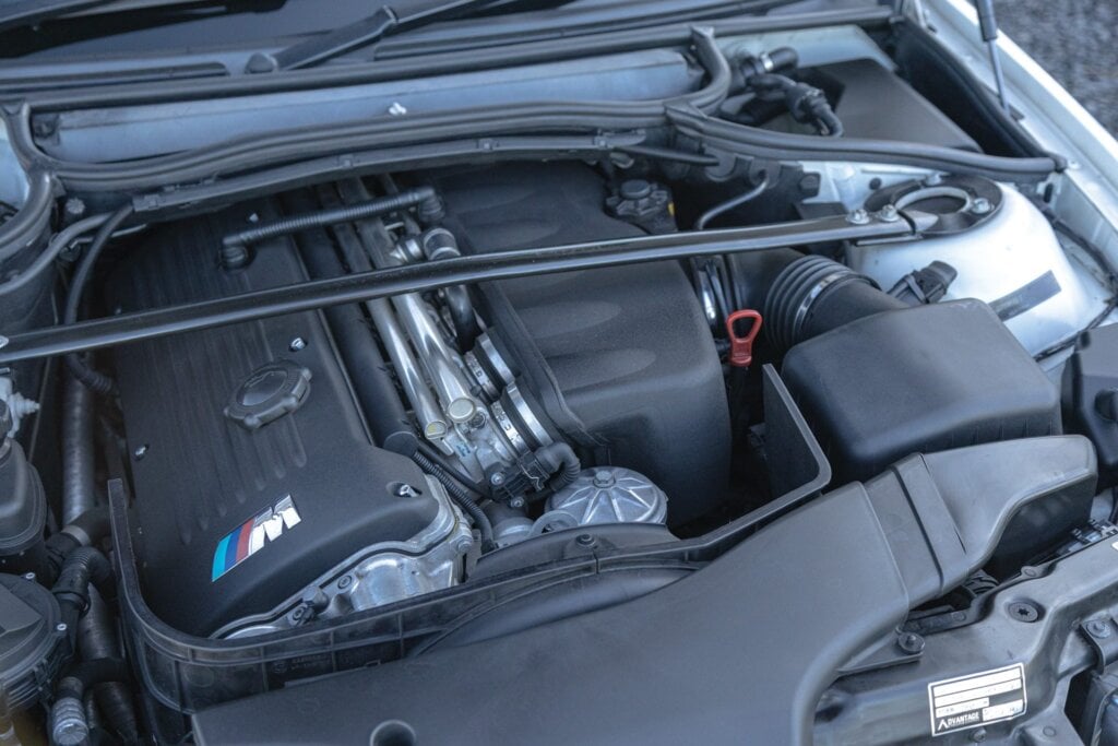 That’s why it was good to row this M3 along via its proper six-speed manual. A three-pedal M3 is more desirable now, commanding a premium while swapping the SMG for a manual is also common. The transmission has a likable action, not super slick, especially when the oils are still warming up, but it’s easy to find your way around the gate. The clutch is well weighted too, with a good bite point.