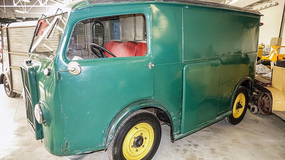 This Type H is an LCV with a 2CV engine and front-wheel drive, produced from 1948 to 1981. Its origins are obvious; note the 2CV headlights. It is very sought after by food and beverage merchants, even today, because of its retro styling.