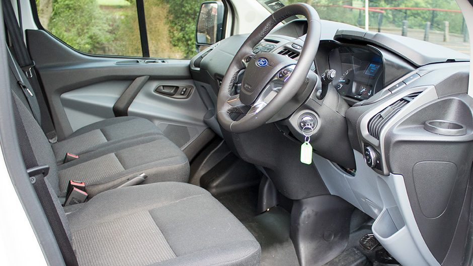 While visibility from the driver’s seat forward is very good, due to the bulkhead and the lack of rear glazing, the Transit Custom suffers large blind spots, but these are mitigated by the huge side mirrors plus the reversing camera also comes into its own when manoeuvring the vehicle out of a tight space or an angled street park.